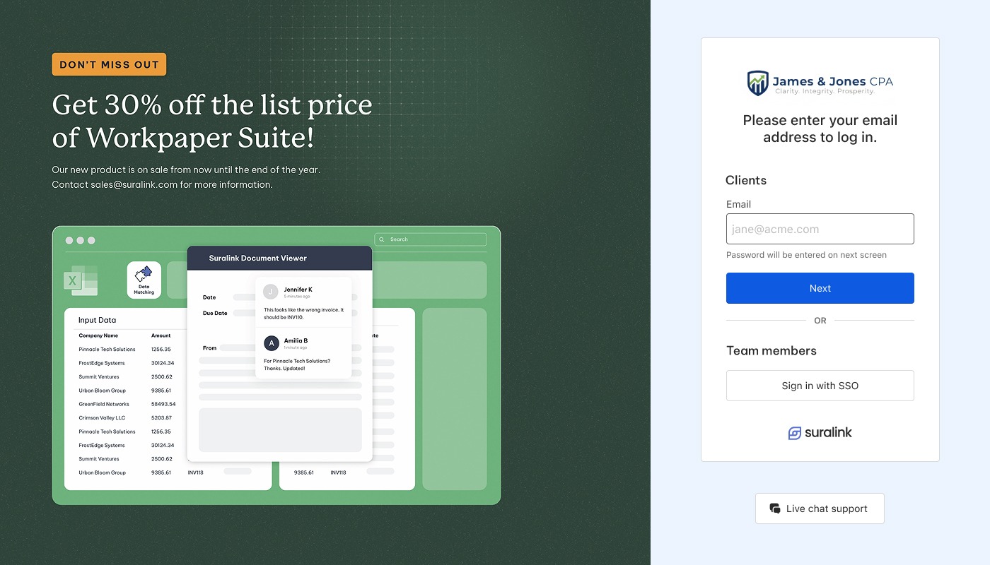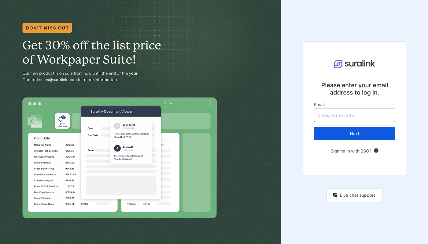 - Nothing about how you log in will change. You will continue signing in through your Company’s SSO as you do today via your firm.suralink.com URL. The login page will simply have a new look. (See screenshot below)
